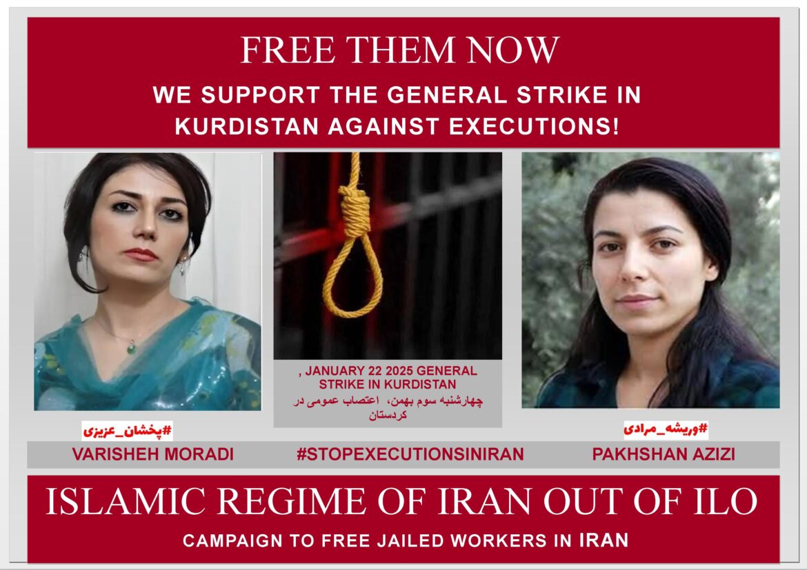 احزاب سیاسی مختلف و نیز نهادهای مدنی و دادخواهان در کردستان در اعتراض به احکام صادر شده علیه زندانیان سیاسی و خطر اعدام پخشان عزیزی و وریشه مرادی مردم را به برپایی اعتصاب عمومی در چهارشنبه ۳ بهمن ۱۴٠۳ فراخوانده اند. این فراخوان در کنار سه شنبه های نه به اعدام که دامنه اش به ۳۴زندان کشیده شده است و به اعتراض برخاستن بخش های مختلف جامعه یک حرکت بزرگ اجتماعی علیه اعدامها و پیشگیری از انجام جنایت دیگری توسط جمهوری اسلامی و اعدام پخشان و وریشه است. کمپین برای آزادی کارگران زندانی قاطعانه از فراخوان اعتصاب عمومی در کردستان برای روز چهارشنبه سوم بهمن ماه حمایت میکند و میکوشد صدای این اعتراض در سطح جهان باشد.