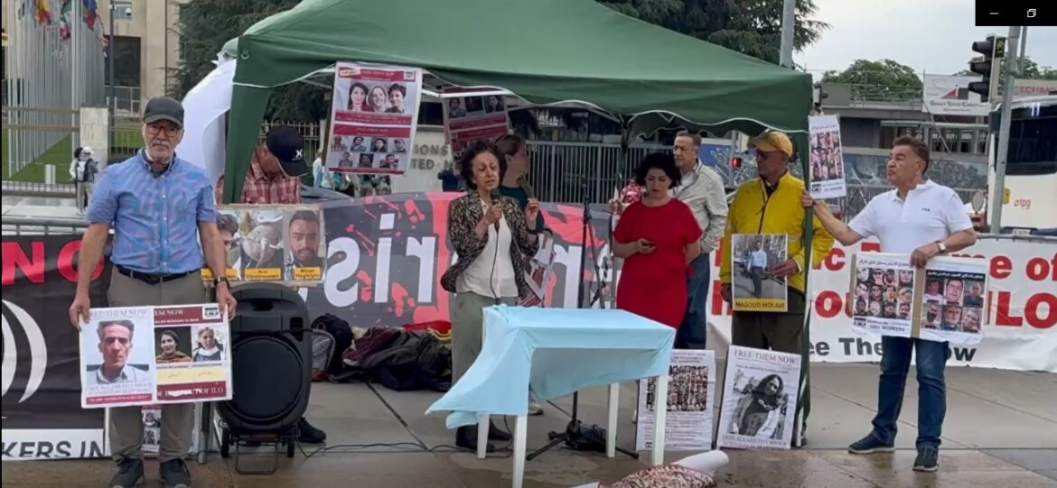 سازمان جهانی کار ILO هفتم ژوئن: تصاویری از میتینگ اعتراضی در مقابل اجلاس سازمان و جهانی کار در ژنو و لینک سخنرانی ها by admin_shahla 09/06/2025 written by admin_shahla 09/06/2025 99 برای اشتراکگذاشتن فیسبوک خود کلیک کنید (در پنجرۀ تازه باز میشود)برای به اشتراک گذاشتن در توییتر کلیک کنید (در پنجرۀ تازه باز میشود)برای به اشتراک گذاشتن روی لینکداین کلیک کنید (در پنجرۀ تازه باز میشود) هفتم ژوئن: تصاویری از میتینگ اعتراضی در مقابل اجلاس سازمان جهانی کار در ژنو 0 comment 0 FacebookTwitterPinterestEmail پست قبلی ششم ژوئن ۲۰۲۵ گزارشی تصویری از میتینگ اعتراضی در مقابل کنفرانس آی ال او در اعتراض به حضور عوامل جمهوری اسلامی پست بعدی ملاقات با مسئول نهاد حقوق بشر سازمان ملل در ژنو خبر های دیگر ملاقات با مسئول نهاد حقوق بشر سازمان ملل... 11/06/2025 ششم ژوئن ۲۰۲۵ گزارشی تصویری از میتینگ اعتراضی... 09/06/2025 نامه سرگشاده به سازمان بینالمللی کار 03/06/2025 نامه به سازمان جهانی کار در مورد کارگران... 25/11/2023 بیانیه اتحادیه معلمان ونکوور در مورد اخراج جمهوری... 29/10/2022 کنگره سراسری اتحادیه کارکنان دولتی و عمومی کانادا... 02/07/2022 آکسیون اعتراضی در مقابل اجلاس سازماان جهانی کار 10/06/2022 سخنان ناصر کشکولی در میتینگ اعتراضی مقابل سازمان... 23/06/2019 بیست و یکم ژوئن ٢٠١٩: سخنان جمشید پوران... 23/06/2019 آکسیون در برابر کنفرانس آی ال او جمهوری... 23/06/2019
