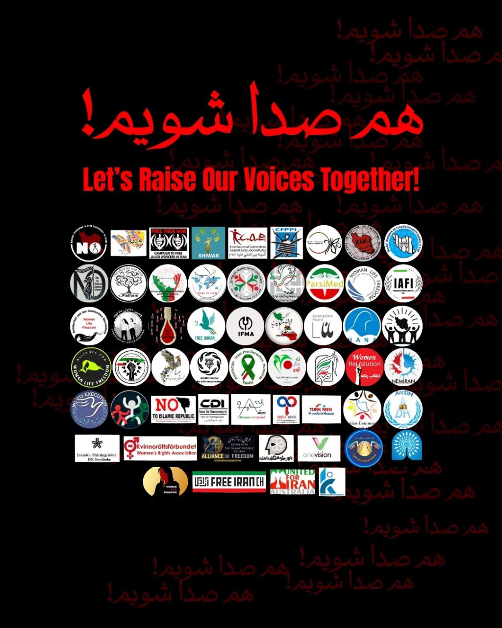 فراخوان همصدا شویم اکنون با امضای ۵۴ گروه و نهاد حقوق بشری، مدنی و سیاسی، و ۳۴۸ نفر از فعالین عرصه های مختلف مبارزانی از خارج و داخل ایران منتشر شده است. علیه اعدام و برای آزادی زندانیان سیاسی وسیعا با این کارزار همراه شویم. گرفتن این ابزار سرکوب از حکومت یک گام مهم برای به پیروزی رساندن انقلاب جهت رهایی از جهنم جمهوری اسلامی. با قدرت مبارزاتمان در زندانها را باز کنیم و به اعدامها پایان دهیم و بساط اعدام را برای همیشه بر چینیم.
