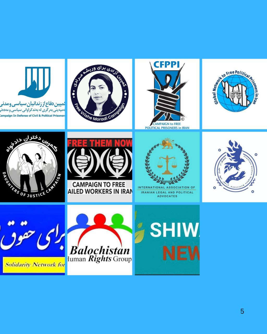ما، نهادها، شبکهها، کارزارها، کادرهای درمانی بینالمللی و وکلای بینالمللی، با اعلام «کمپین آزادشان میکنیم» و با مطالبه آزادی تمامی بازداشتشدگان اعتصابات و اعتراضات اخیر و زندانیان سیاسی و عقیدتی، از همه انسانهای آزادیخواه و انساندوست، هنرمندان، وکلا، ورزشکاران، اقشار مختلف جامعه، نهادها، سازمانها و تشکلها دعوت میکنیم به این کمپین بپیوندند تا صدای اعتراضات سراسری مردم ایران و بازداشتشدگان این اعتراضات باشیم.
